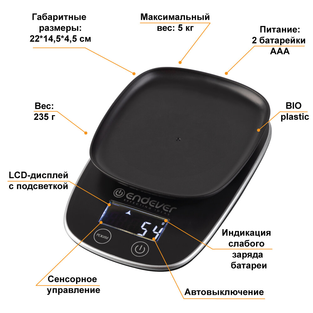 Весы кухонные Endever Skyline KS-526, черный (80021) интересное: