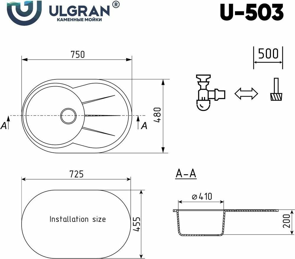 Мойка Ulgran U-503-341, ультра-белый