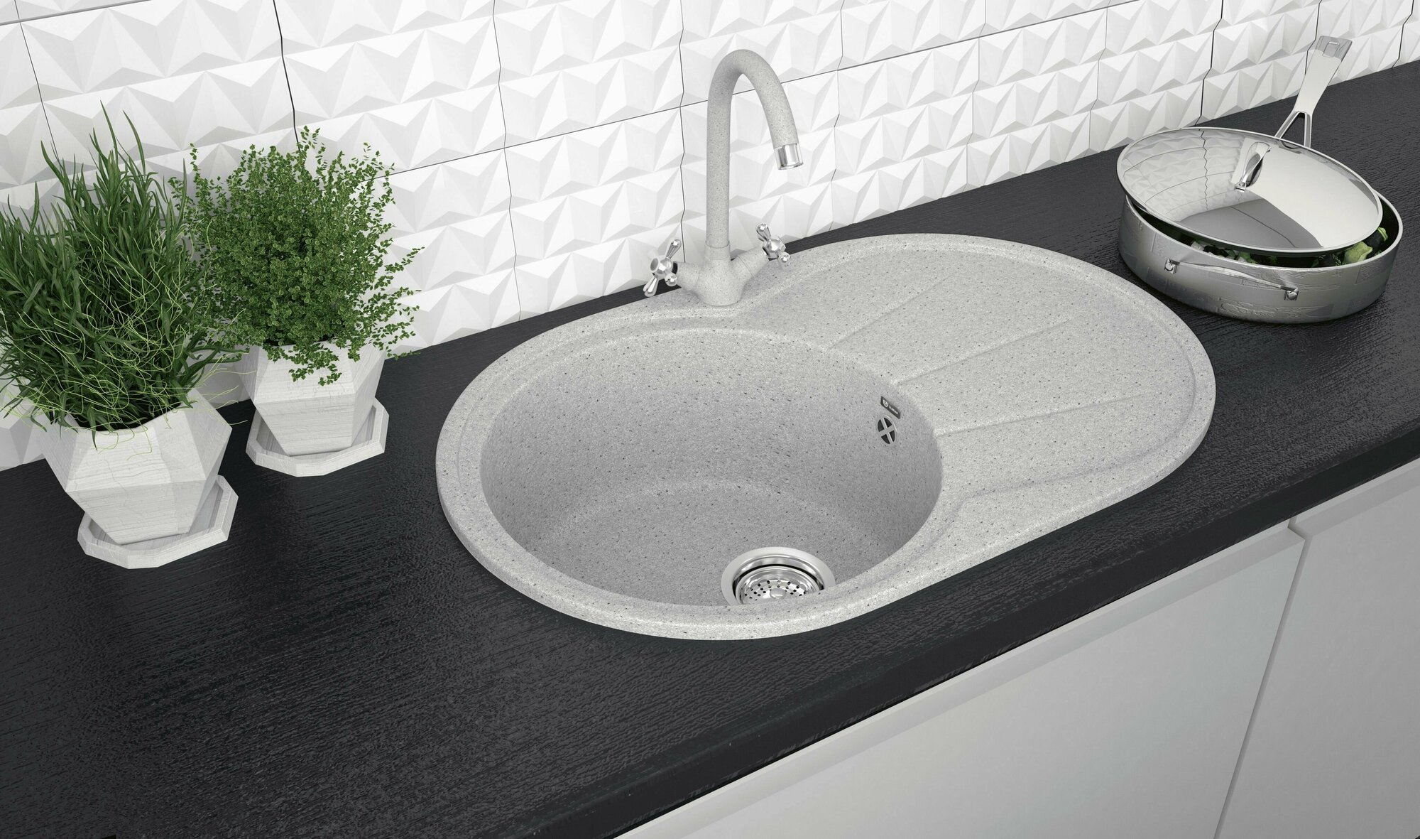 Мойка кухонная Ulgran из искусственного мрамора овальная U-503, цвет: графит, база: 72.5х45.5 см, арт. U-503-342