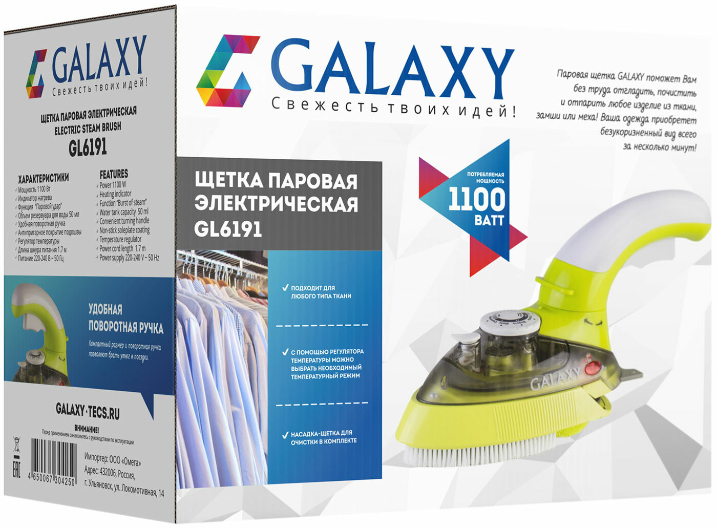 Щетка паровая электрическая GALAXY GL6191, арт. гл6191бир, гл6191жл