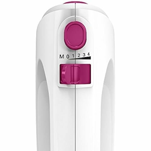 Миксер BOSCH MFQ2210P, 375 Вт, цвет: белый/розовый, 4 скорости+ импульс.режим, 2 крюка+ 2 венчика
