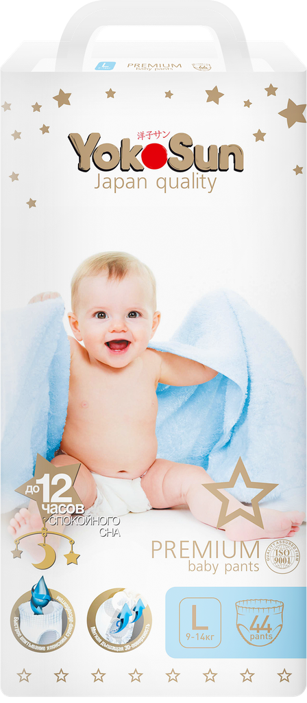 Подгузники-трусики Yokosun, размер L (9-14 кг), 44 шт .