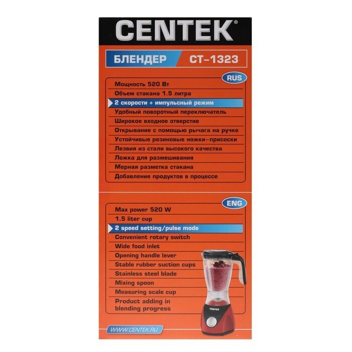 Стационарный блендер CENTEK CT-1323, красный/черный