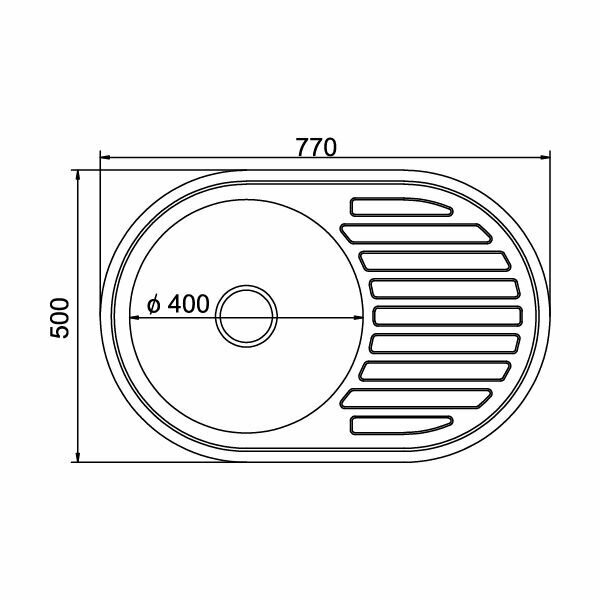 Врезная кухонная мойка Mixline из нержавеющей стали овальная 50х77 см выпуск 3 1/2 глубина 16 см, крыло правое