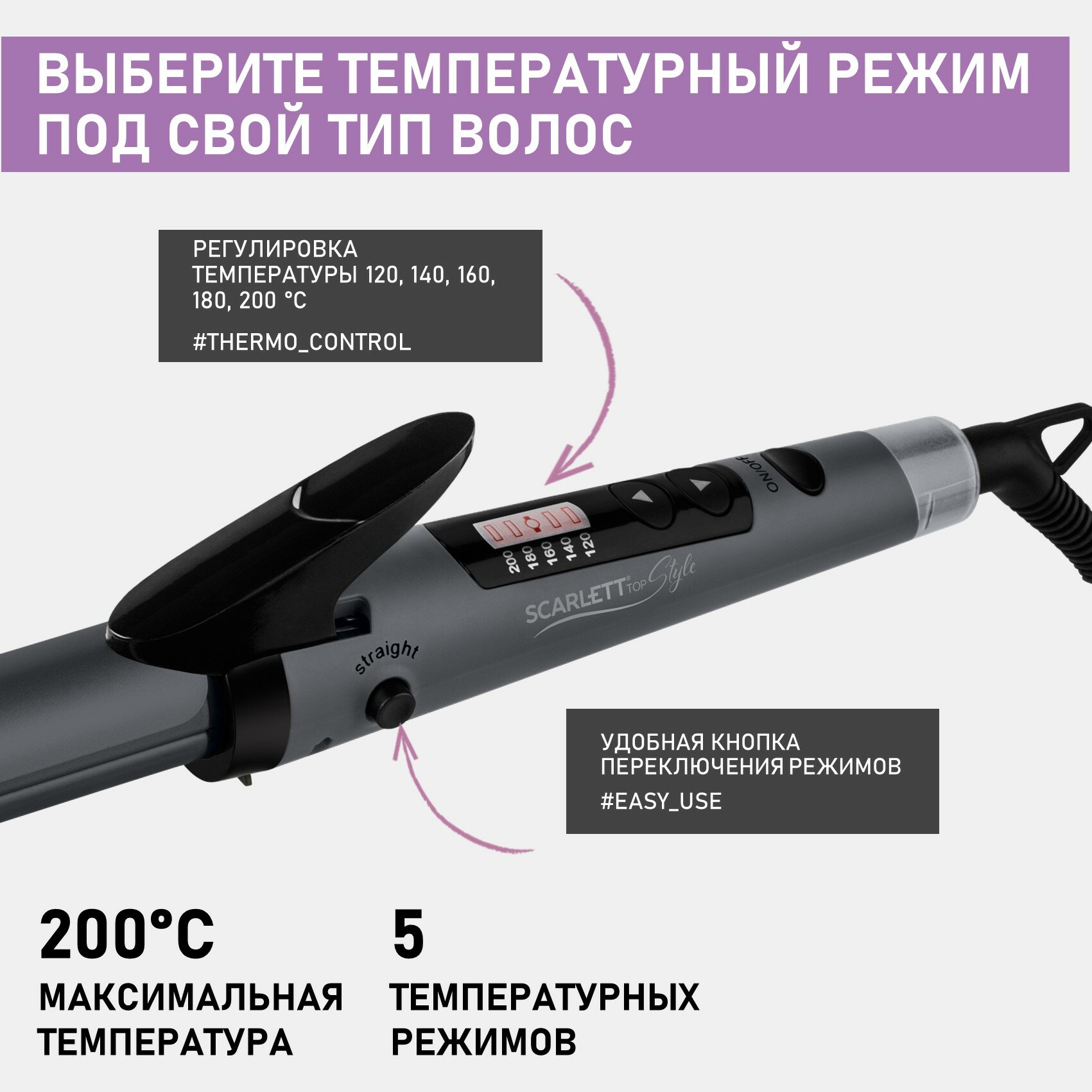 | Плюсы: | Для локонов и выравнивания, 5 режимов нагрева |
