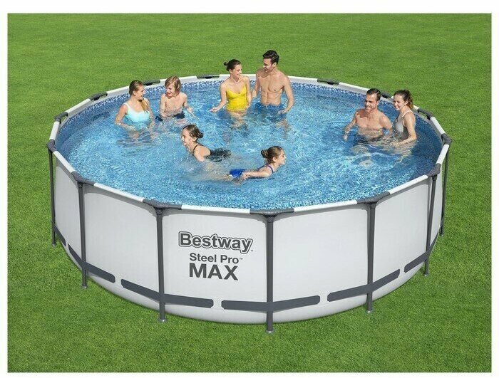 Бассейн Bestway "Steel Pro MAX", каркасный, круглый, диаметр 457 см, высота 122 см, объем 16015 л, фильтр-насос, лестница, тент, 56438