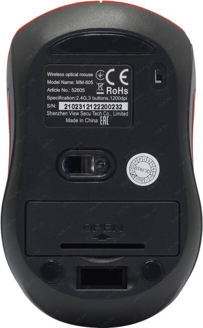 Мышь MM-605, беспроводная, оптическая, 1200 dpi, 2xАAA (не в компл), красная