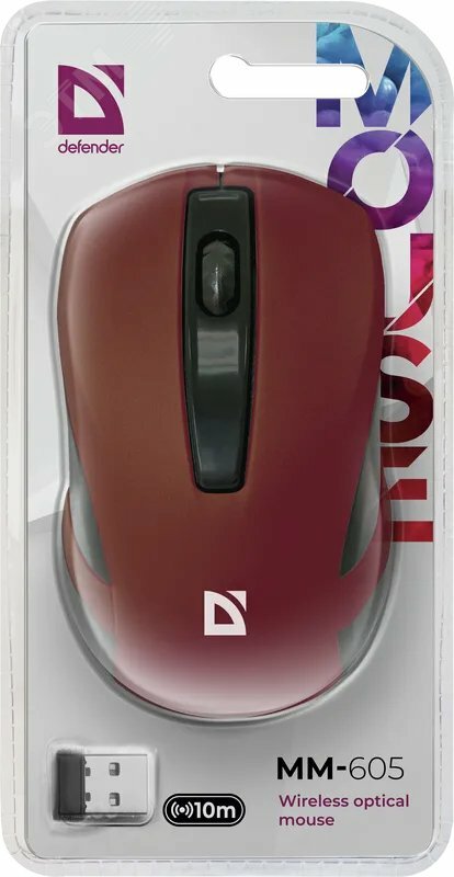 Мышь беспроводная DEFENDER MM-605 красный USB 52605