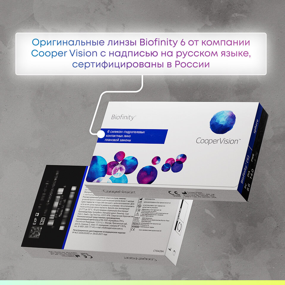 Контактные линзы Biofinity 6 R 8.6, D +6.5, DIA 14.0