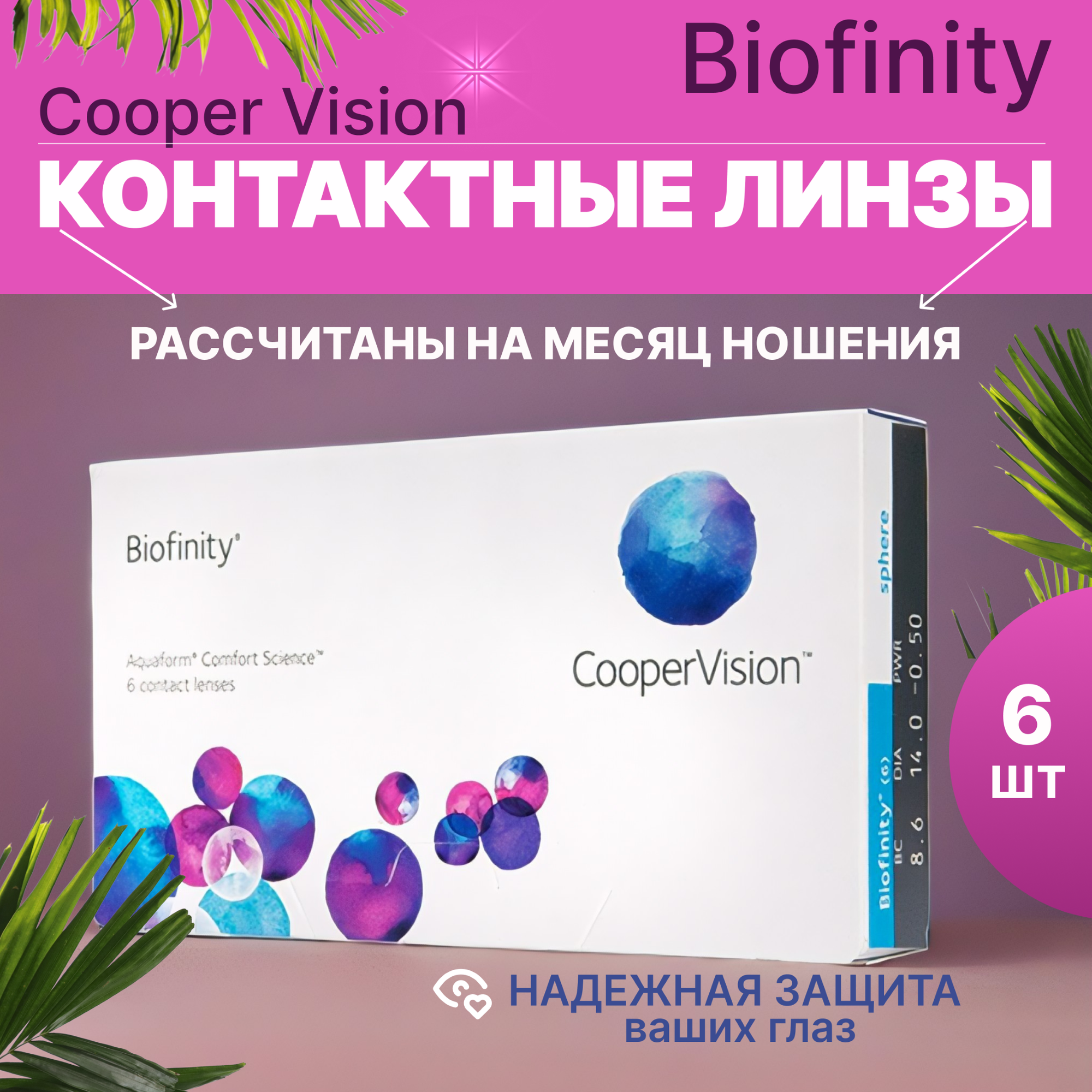 Контактные линзы CooperVision, Biofinity, 6 линз I 8.6 I -9.50 I ежемесячные I прозрачные