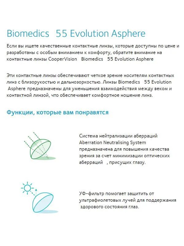 СохранитьКонтактные линзы Biomedics 55 Evolution asphere 6 линз R 8,6 -4,25 интересное: