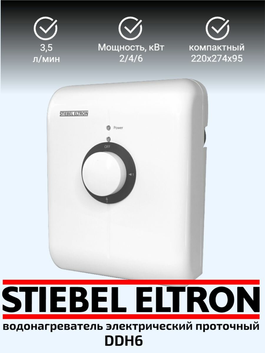 Ниже Вы можете прочитать отзывы на Электрический проточный однофазный водонагреватель STIEBEL ELTRON | DDH 6, ознакомится с подробными характеристиками, посмотреть интересные обзоры и фотографии на Электрический проточный однофазный водонагреватель STIEBEL ELTRON | DDH 6.