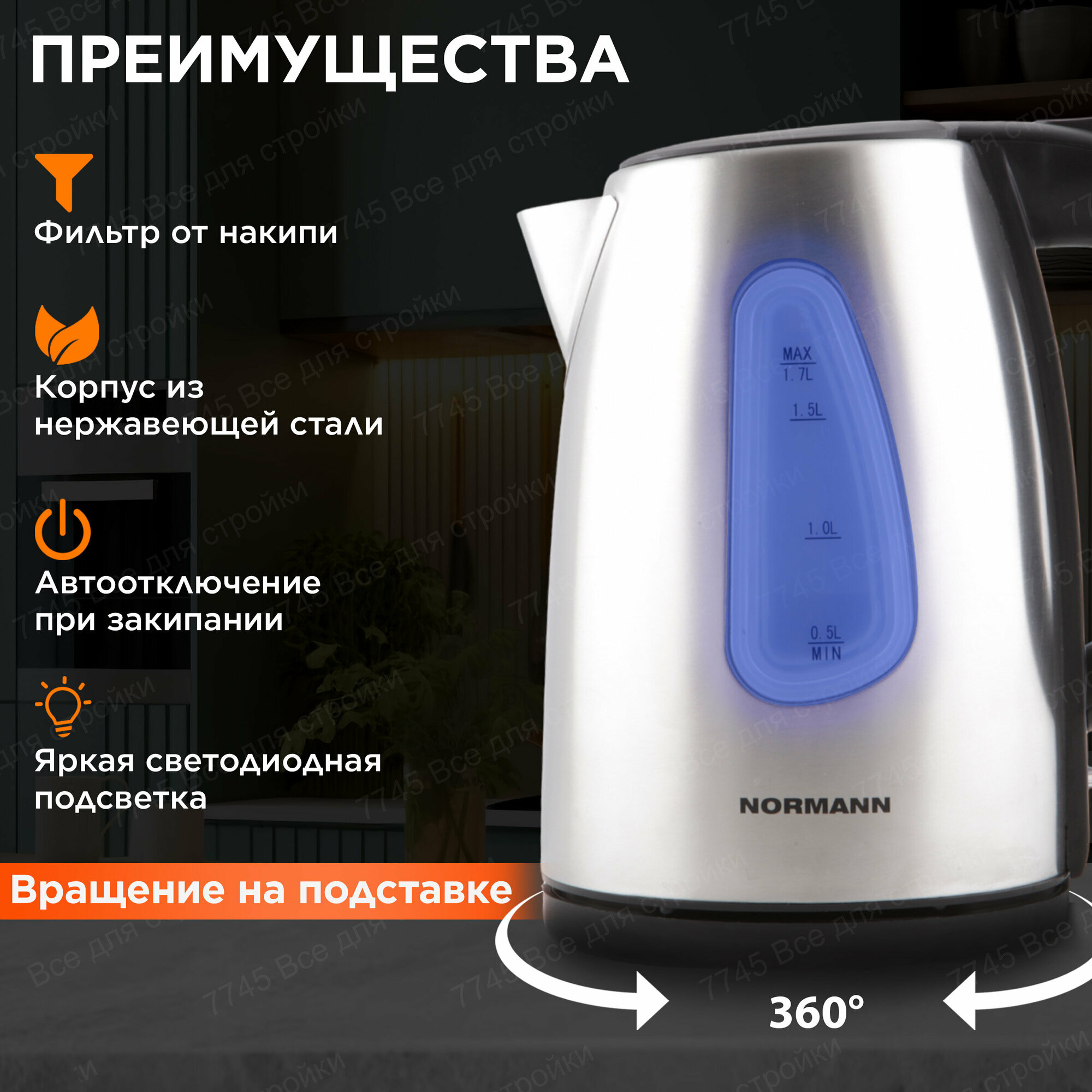 Чайник электрический AKL-142 NORMANN (2200 Вт, 1,7 л, нерж.сталь, подсветка) интересное: