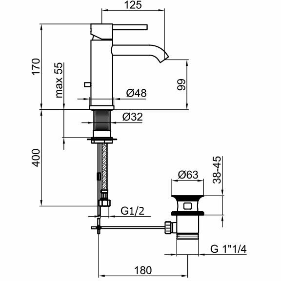 | Длина излива | 125 мм |