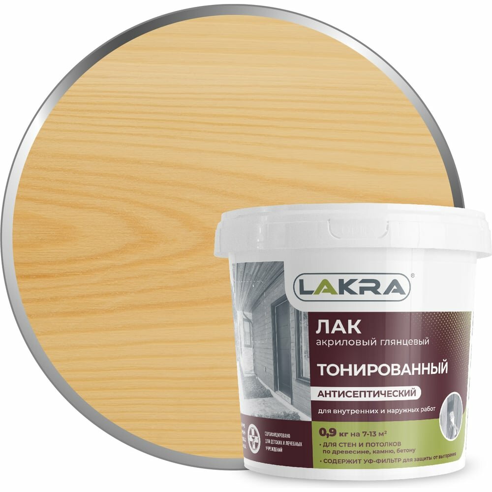 Лак Лакра Тонированный с антисептическими свойствами бесцветный, глянцевая, 0.9 кг, 0.9 л