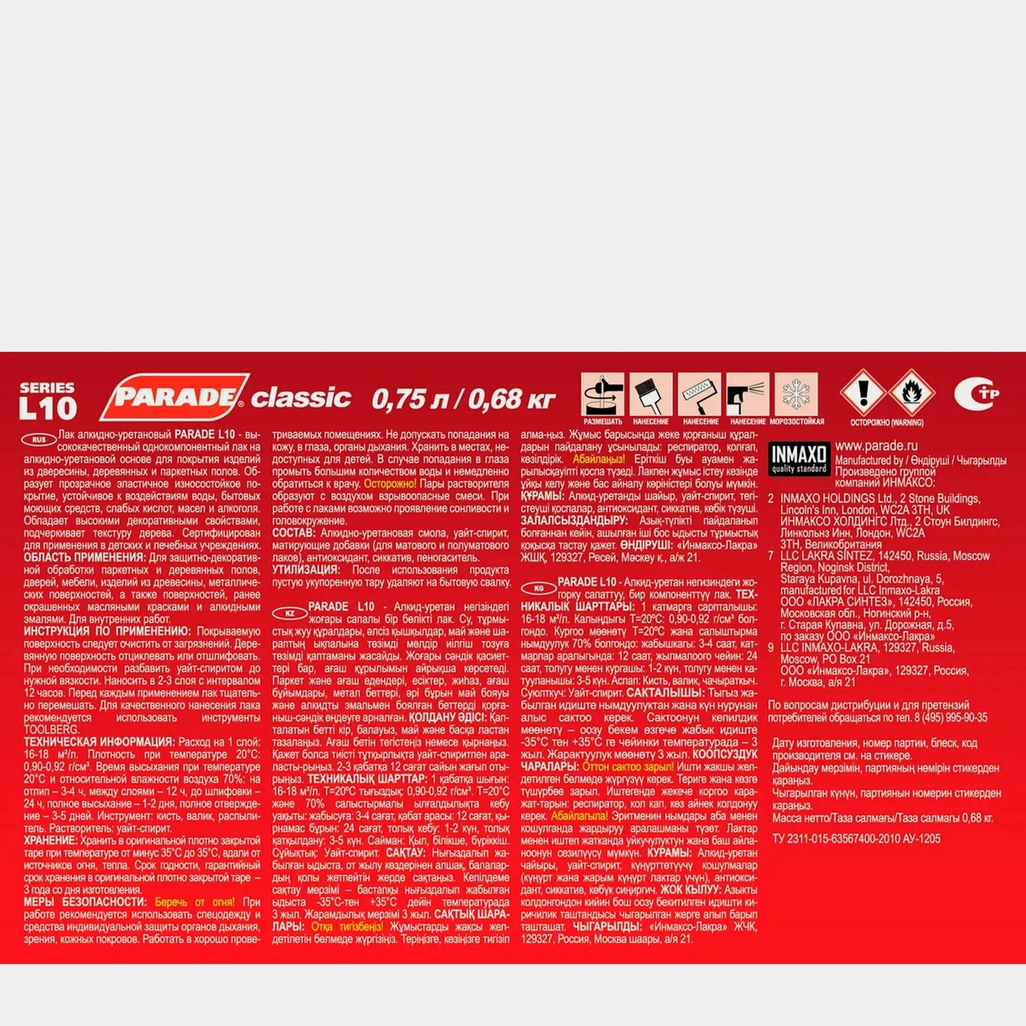 Паркетный лак Parade Classic L10 (Параде Классик Л10), (10.00л.) матовый