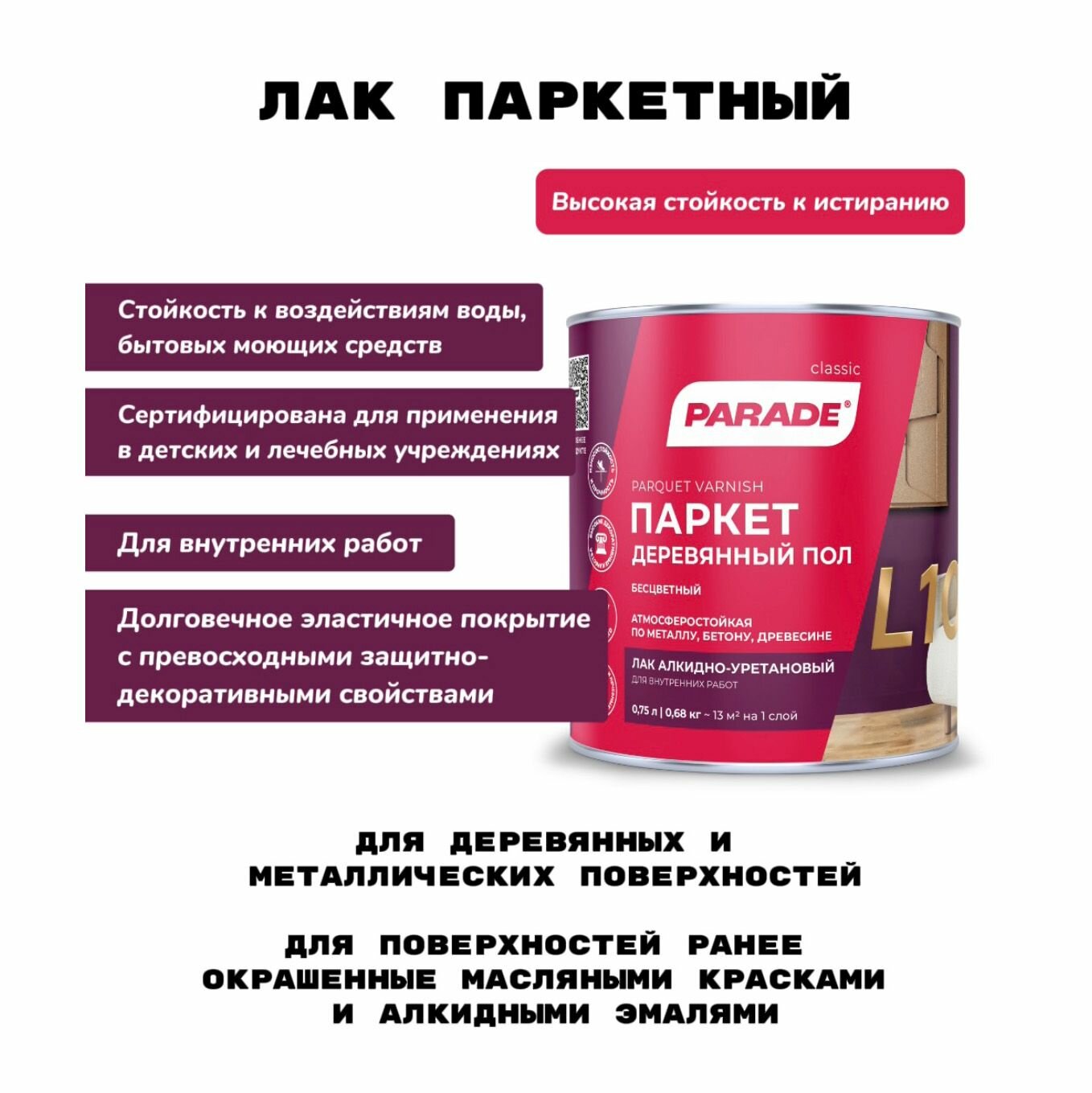 Лак Parade "L10 Паркет & Деревянный пол", матовый, прозрачный, 0.75 л
