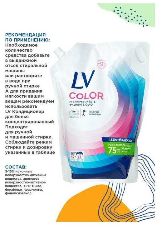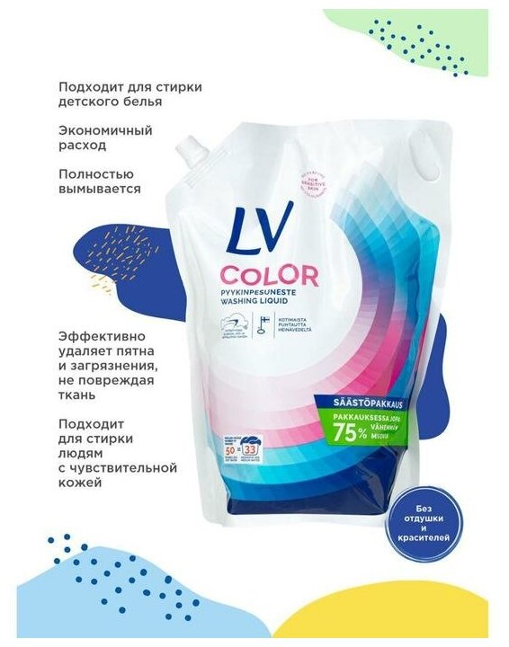 Жидкость для стирки LV Color 1.5л, дой-пак (из Финляндии)