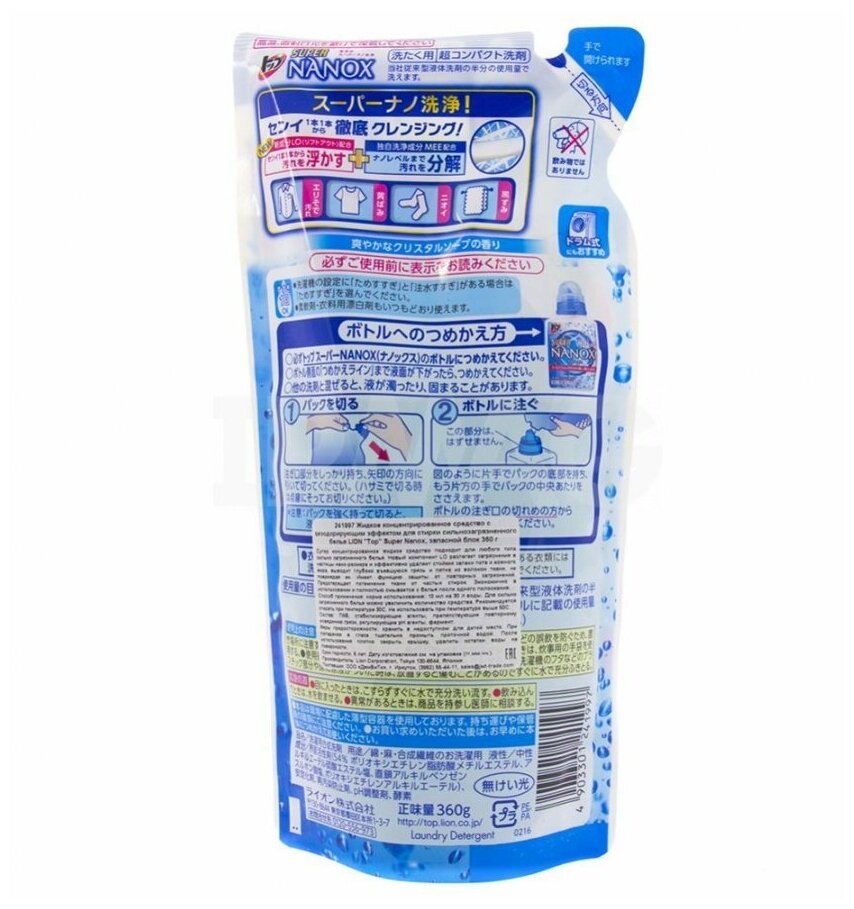 Купить Жидкость для стирки Lion Япония TOP Super Nanox концентрат, сменный блок, 360 мл