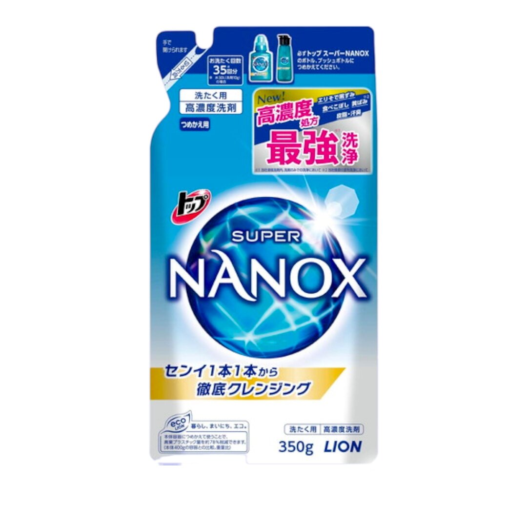LION NANOX топ super гель для стирки концентрированный (сменный блок), 360 g, Япония