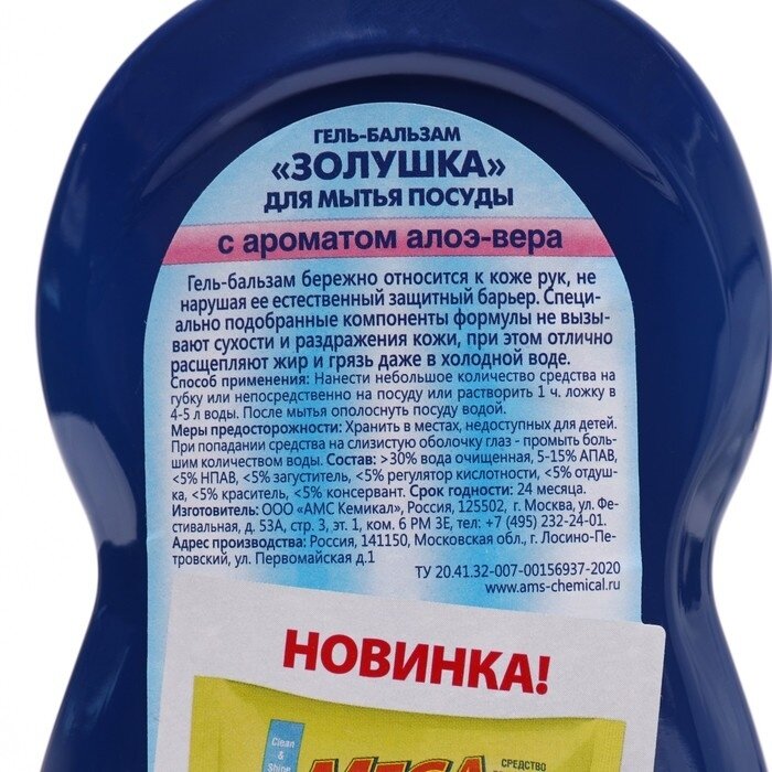 Средство для мытья посуды Золушка 750 мл, алоэ-вера, гель-бальзам М-11-2