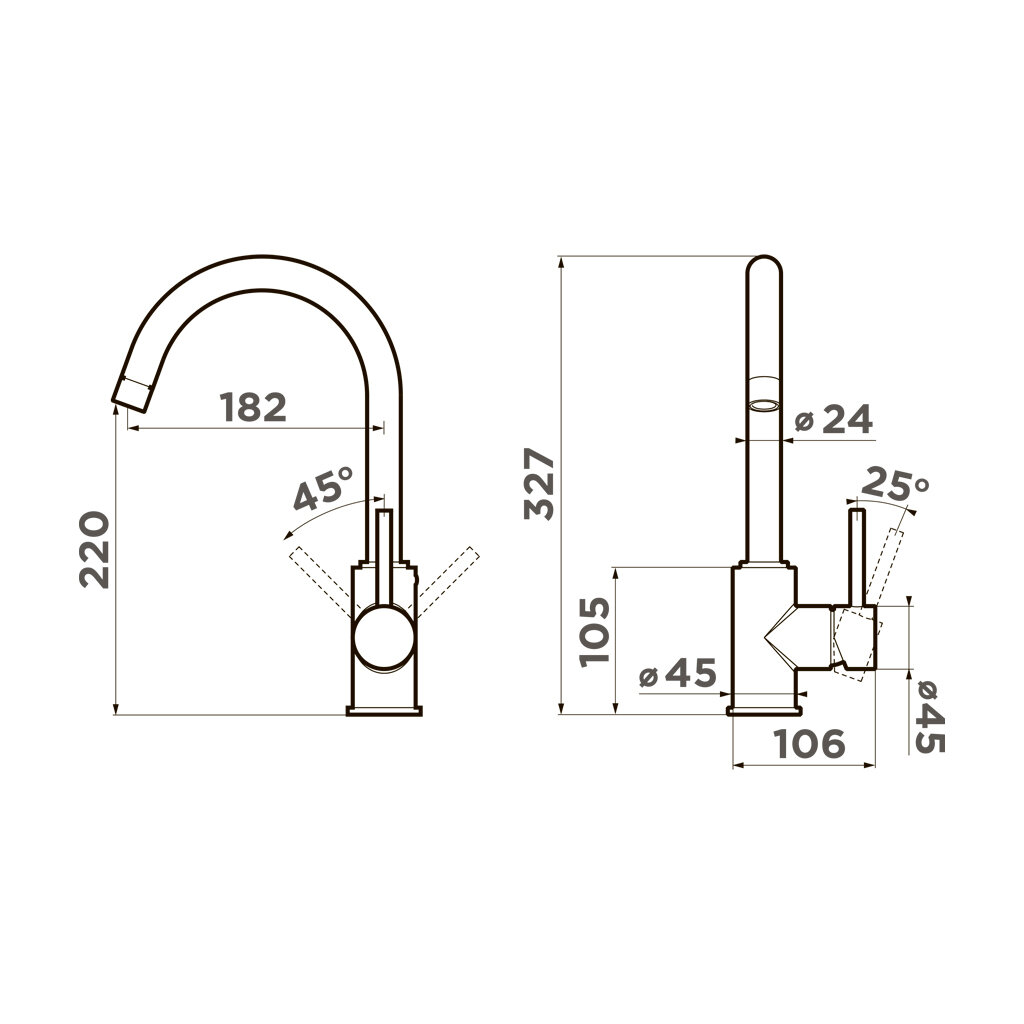 | Высота излива | 220 мм / 327 мм |