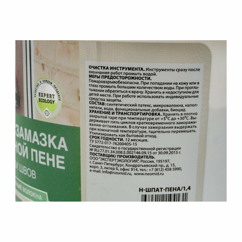 Шпатлевка готовая NEOMID безусадочная 1,4кг, арт.Н-Шпат-пена/1,4
