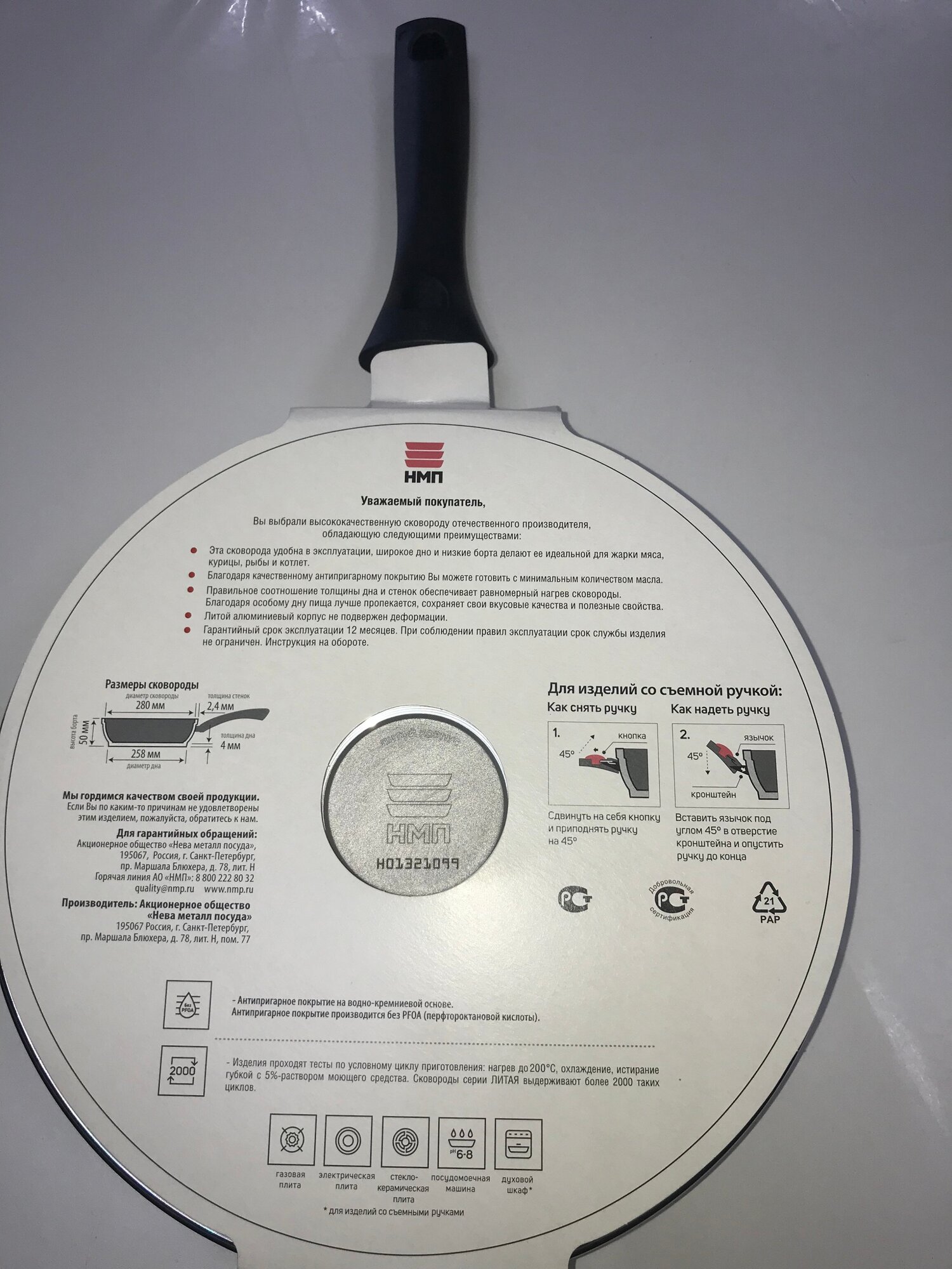 | Отзыв: | много лет пользовалась посудой этого производителя, все устраивало, но поменяла плиту на индукцию и все, увы не подходит. В этот раз брала маме, сковородка отличная. |