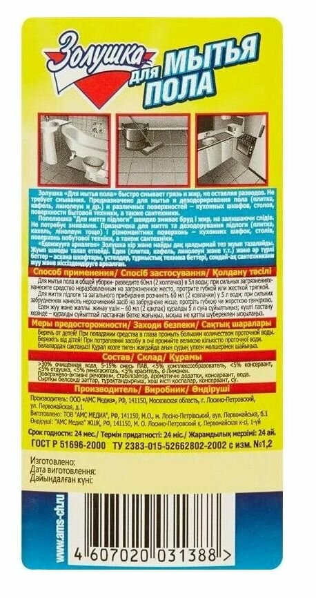 Средство для мытья пола золушка 500мл интересное:
