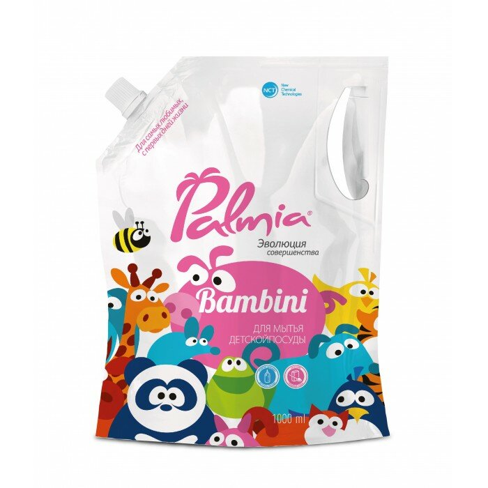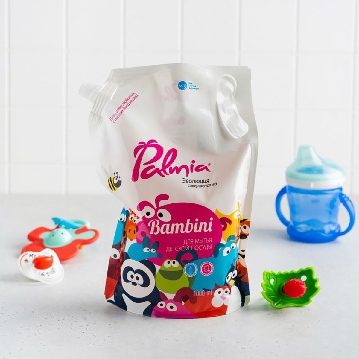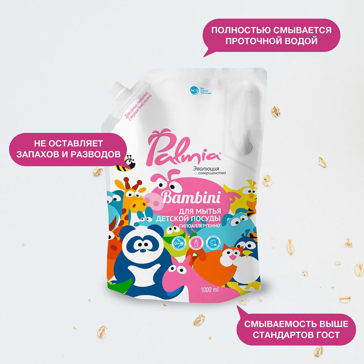 Купить Гель для мытья детской посуды Palmia "Bambini" на основе пищевой соды, гипоаллергенный, 1 л, дой-пак