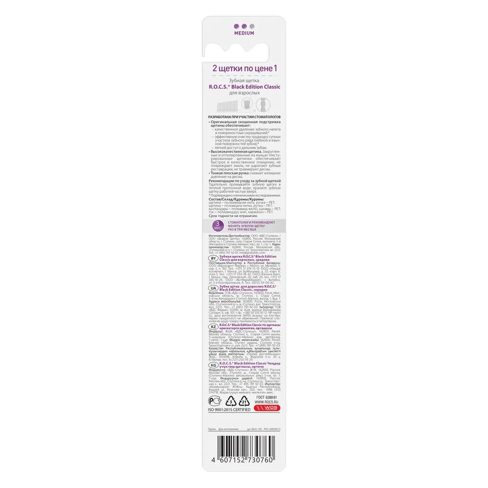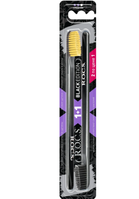 Набор зубных щеток R.O.C.S. Black Edition Средняя (2 шт)