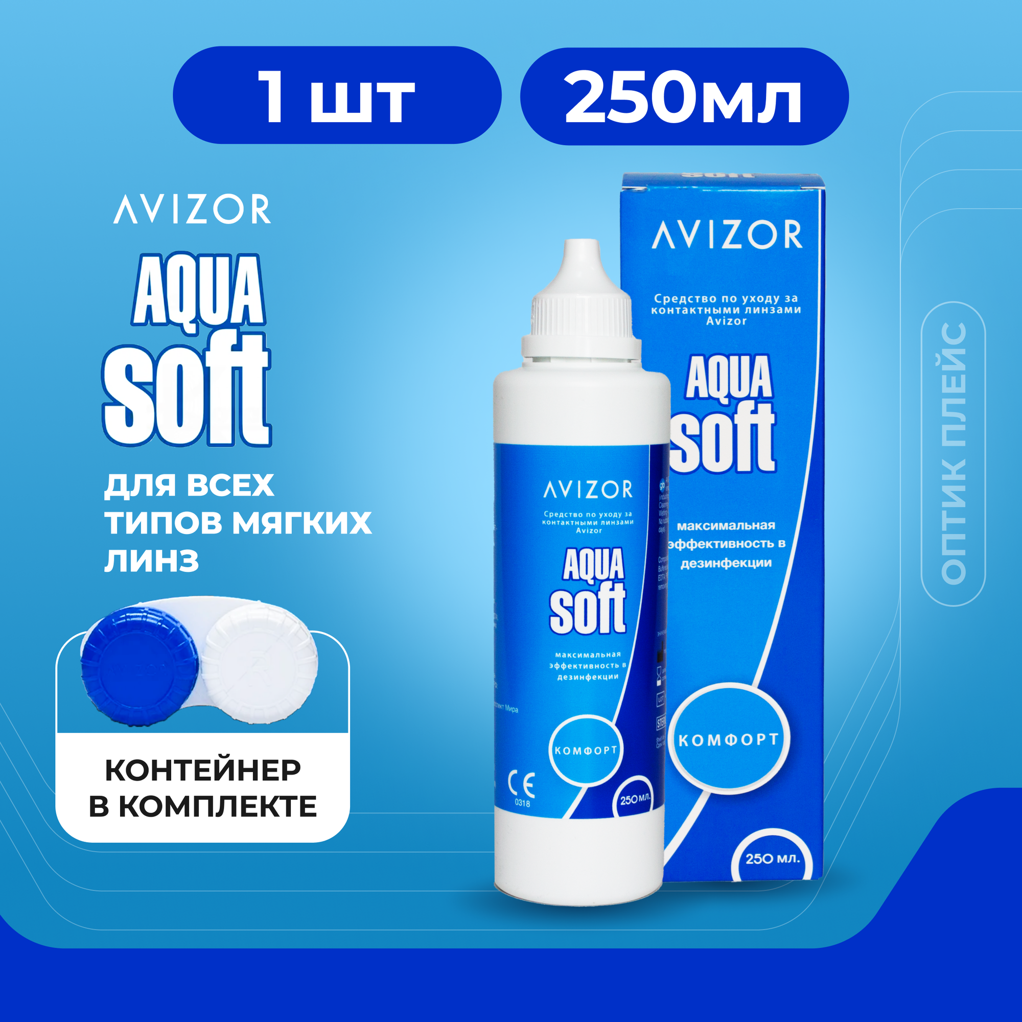 Многоцелевой раствор для контактных линз Avizor Aqua Soft Comfort (Авизор Аквасофт Комфорт), 250 мл с контейнером для линз