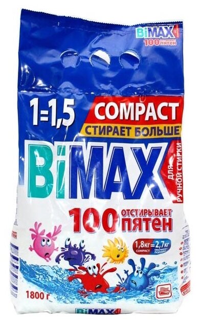 Стиральный порошок Bimax 100 пятен, ручной, 1800 гр