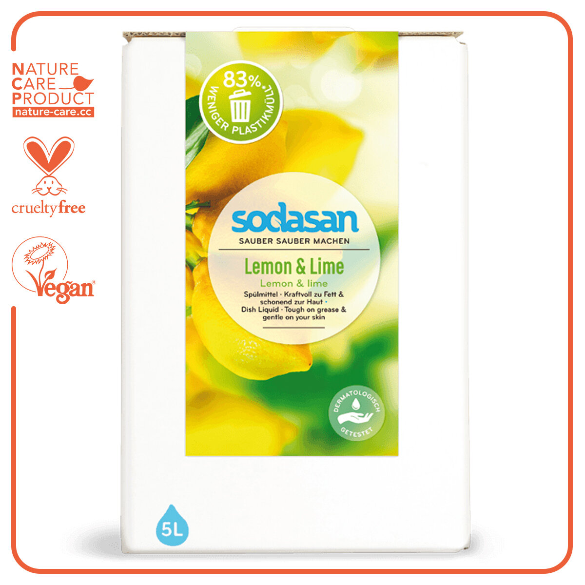 Средство для мытья посуды Sodasan Лимон и Лайм, 5 л, bag-in-box