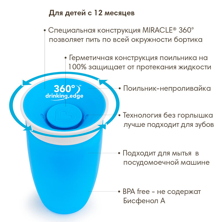 Munchkin поильник-непроливайка MIRACLE® 360° Голубой 296 мл. 12+