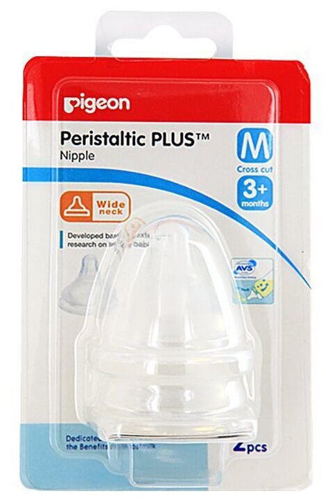 Купить Соска Pigeon Peristaltic Plus для бут. с шир. горлом, M (3 мес.+), 2 шт.