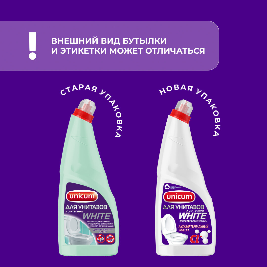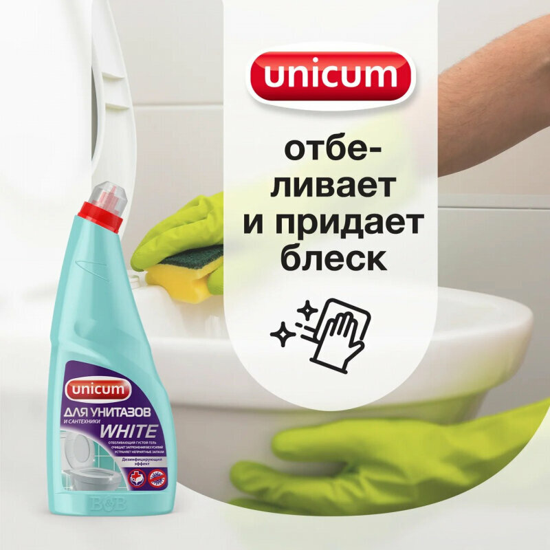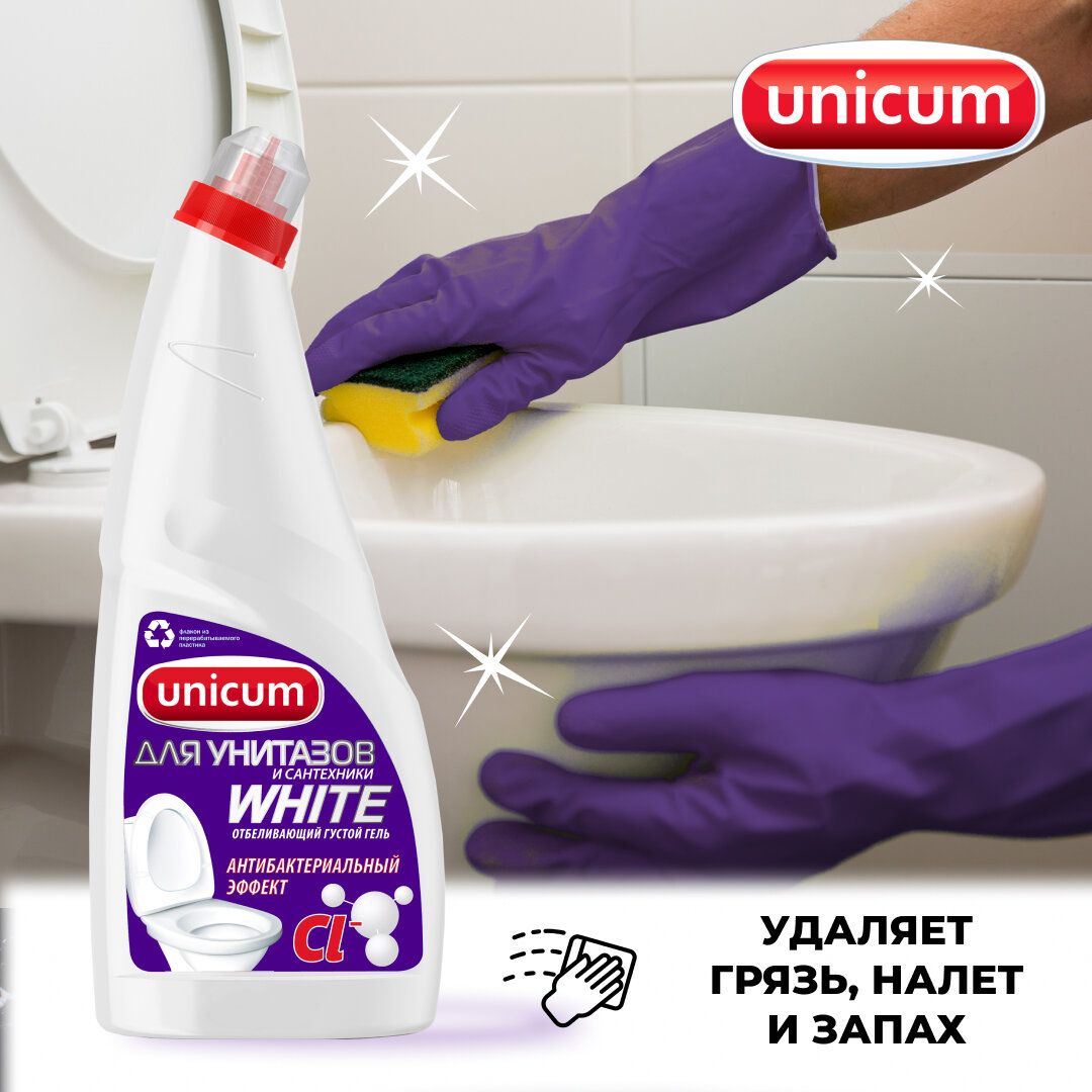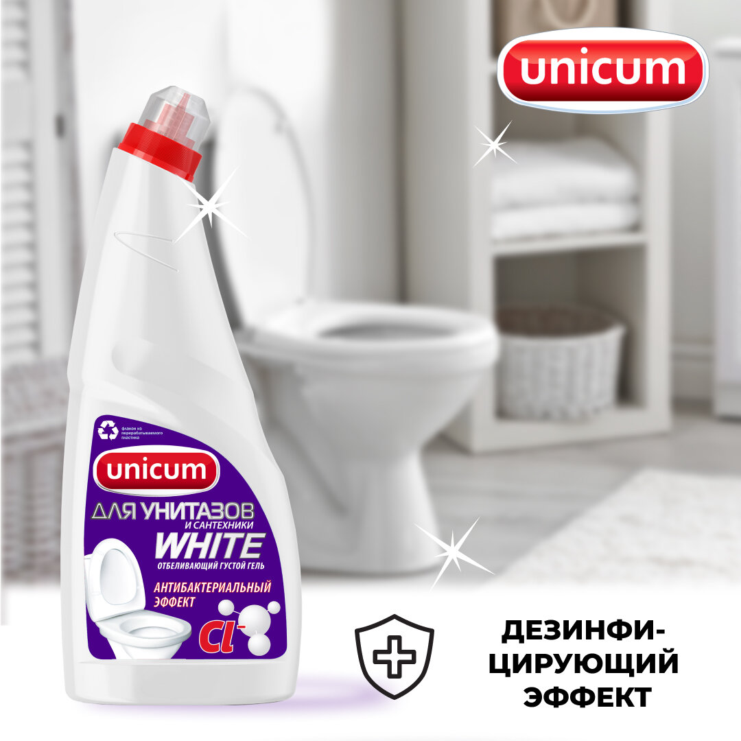 UNICUM Гель для чистки унитазов и сантехники WHITE 750мл.