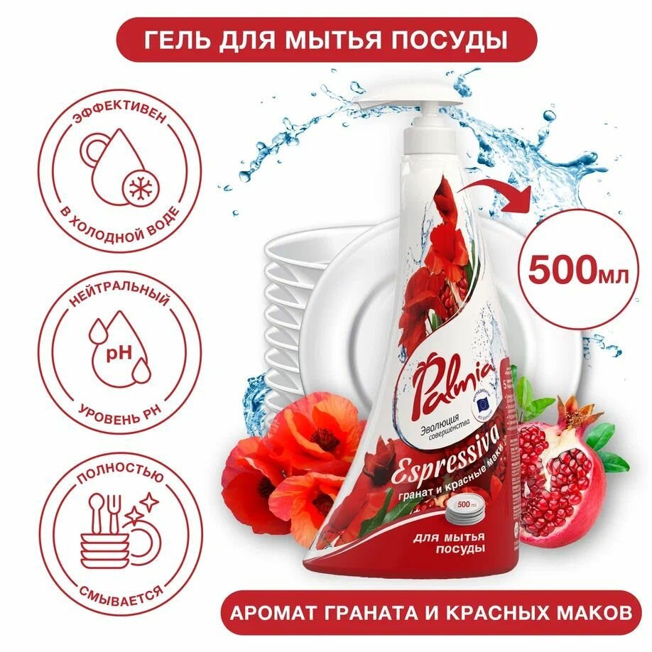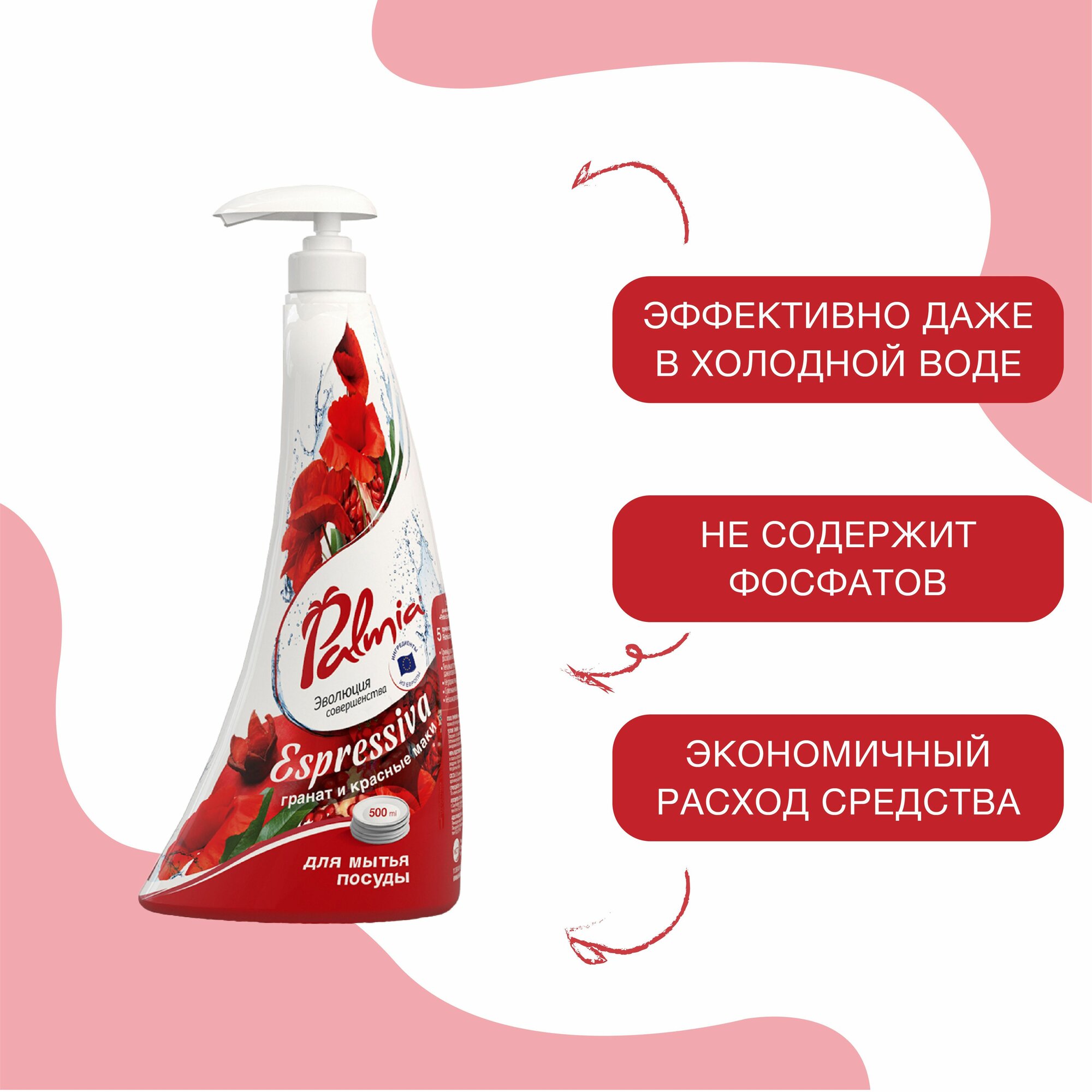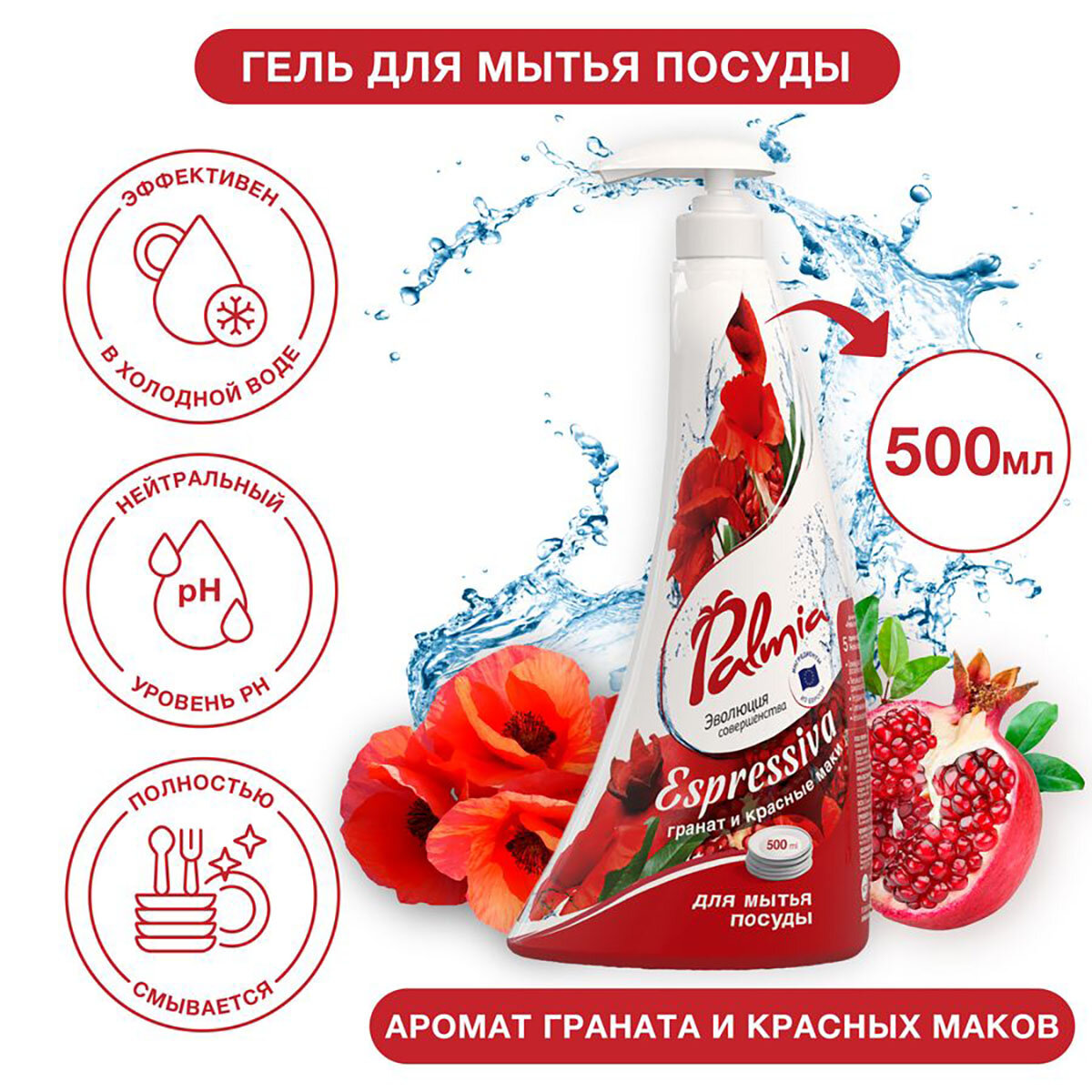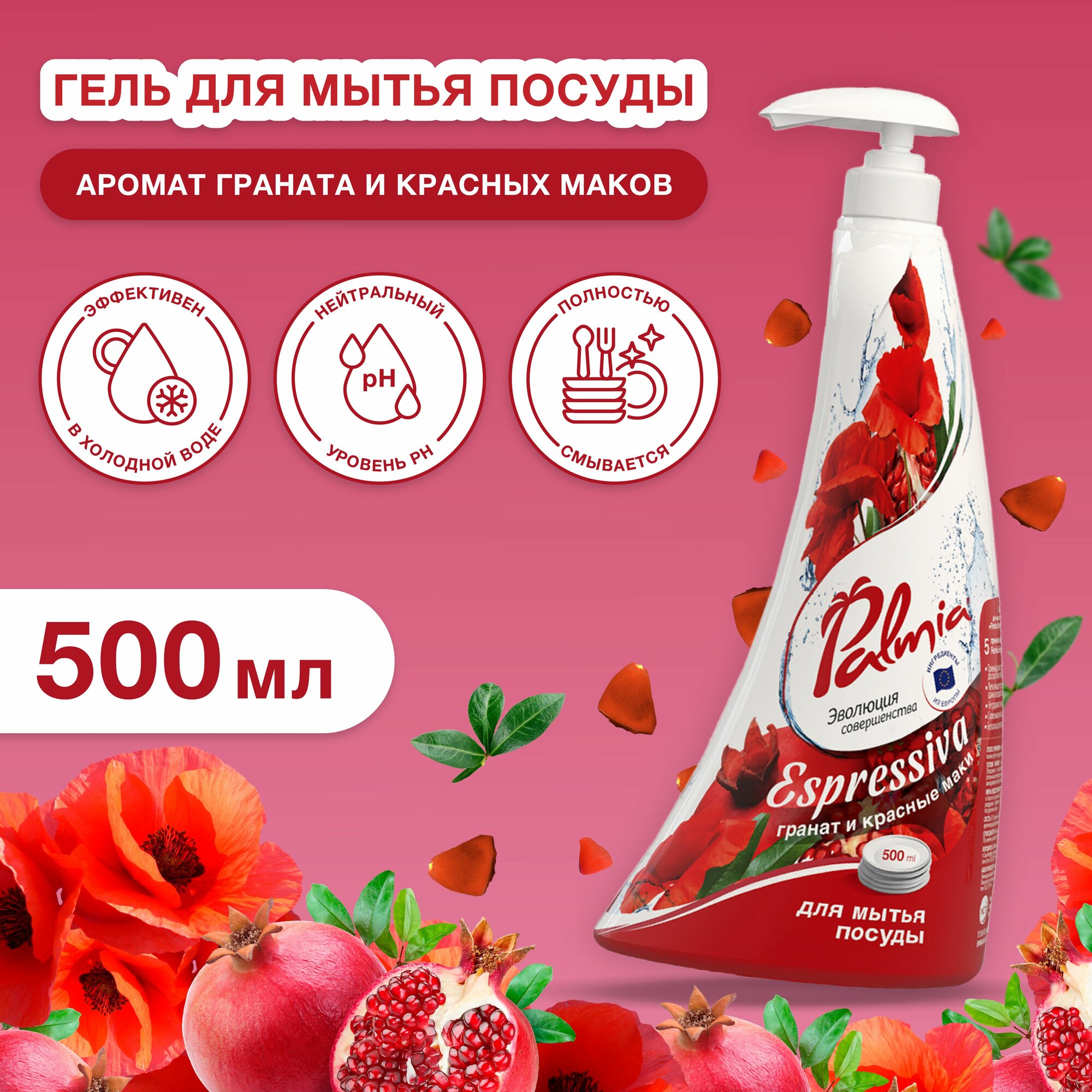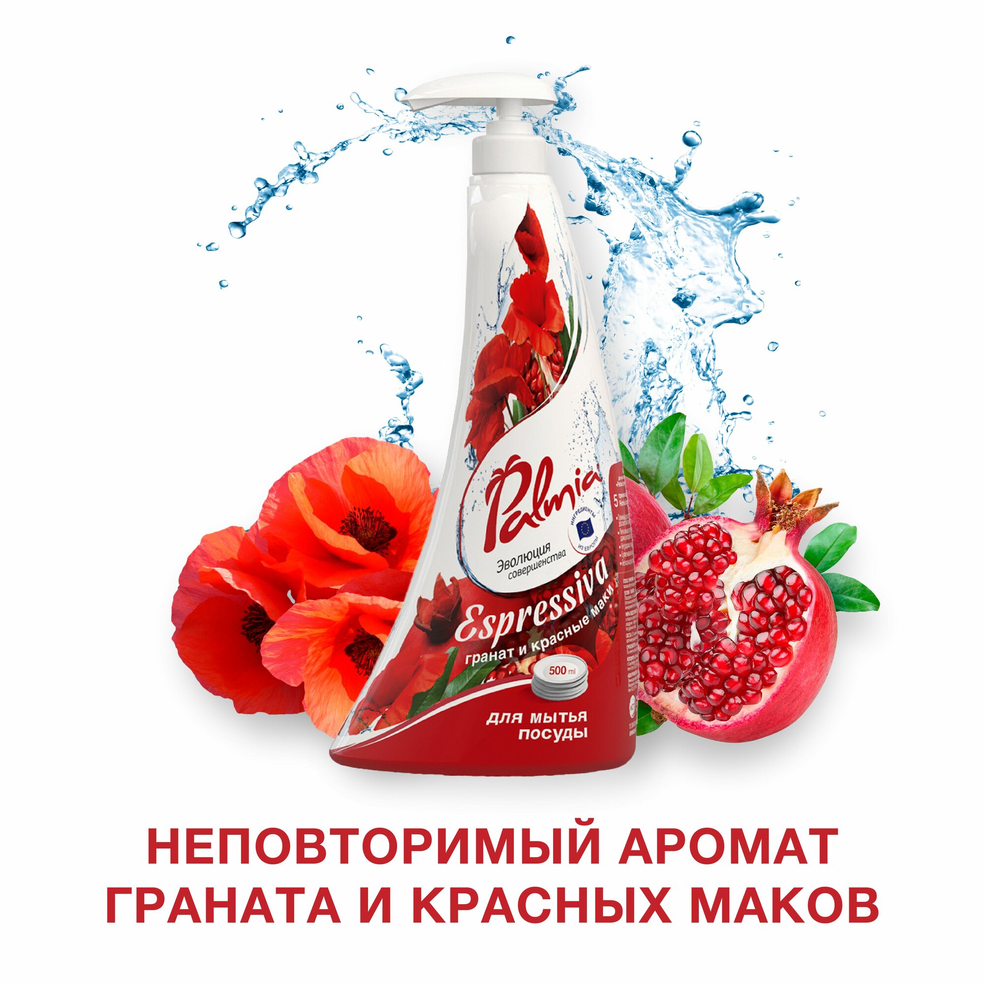 Купить Гель для мытья посуды Palmia "Espressiva" с ароматом граната и красных маков, 0,5 л, с дозатором