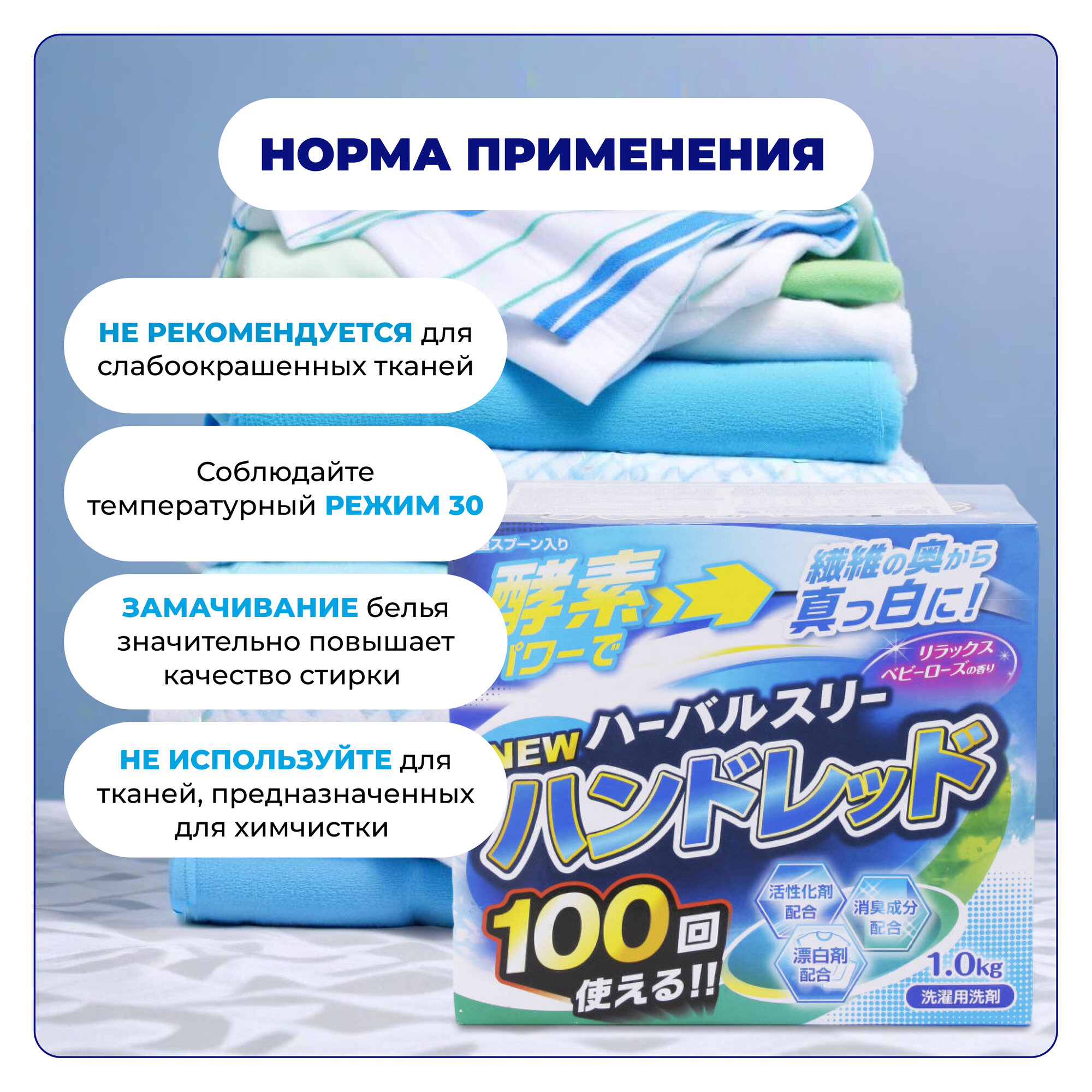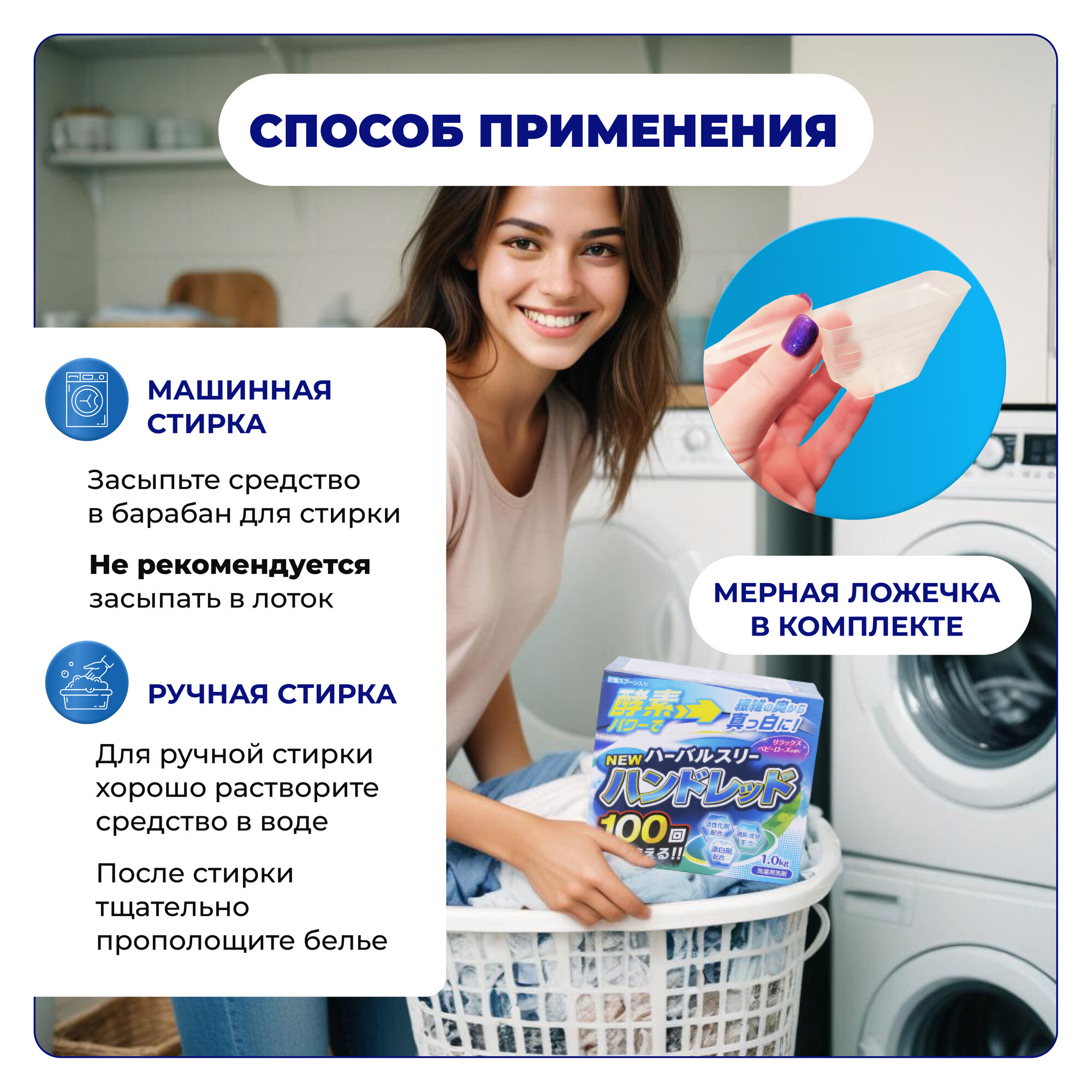 Стиральный порошок автомат с отбеливателем и ферментами концентрированный Mitsuei Япония "100 стирок" 1 кг для цветного и белого белья с дезодорирующими компонентами