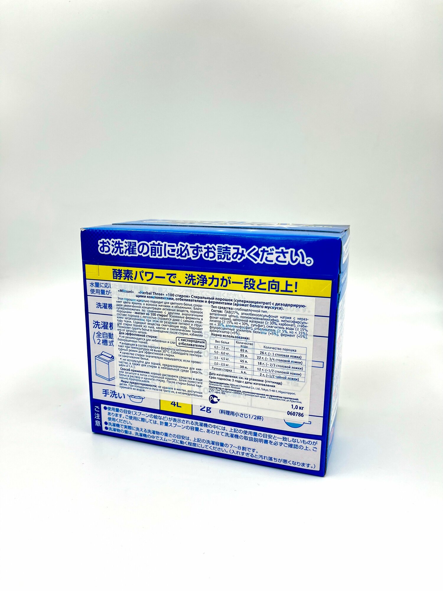 Стиральный порошок Mitsuei Herbal Three суперконцентрат, дезодорирующий, с отбеливателем и ферментами, аромат белого мускуса, 1 кг