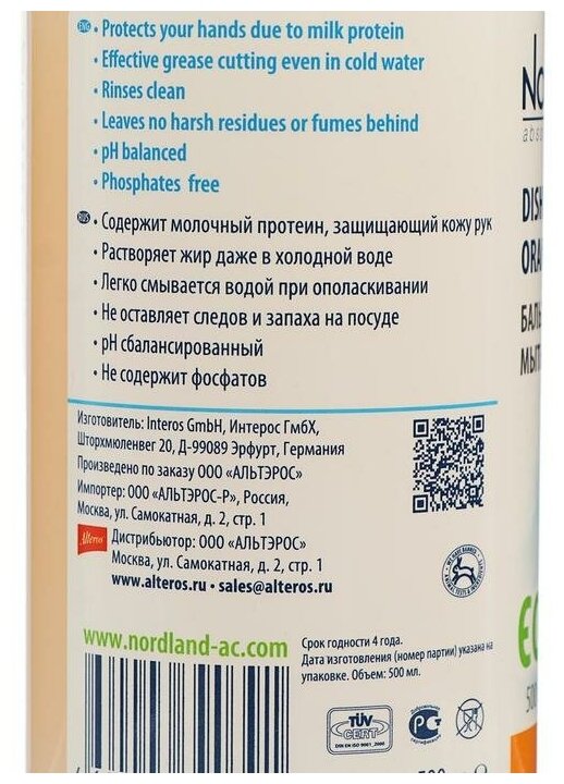 Средство для мытья посуды Nordland "Апельсин и ваниль", 500 мл интересное: