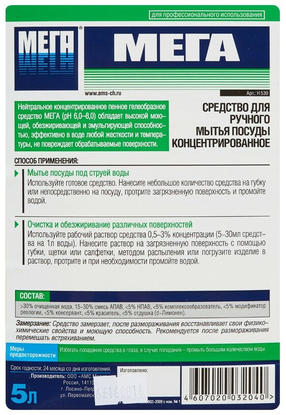 Средство моющее для посуды 5л мега концентрат ''АМС'' 1/1
