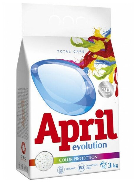 April Evolution Стиральный порошок April Evolution, Color, Protection, автомат, для стирки цветного, 3 кг