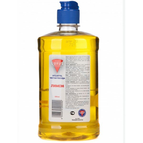 Luxus Professional чистая посуда лимон средство для мытья посуды и рук, концентрат 600 мл
