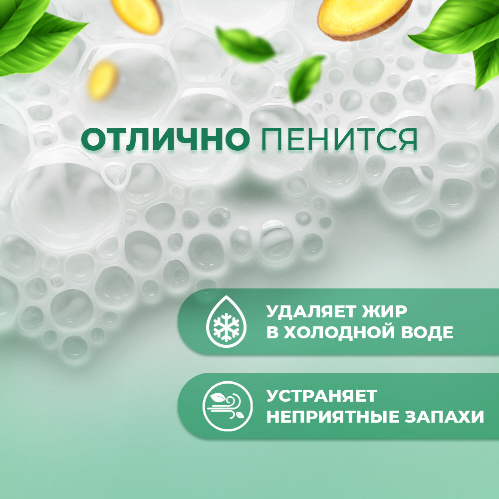 | Плюсы: | Отлично моет в холодной воде, легко смывается с посуды. |