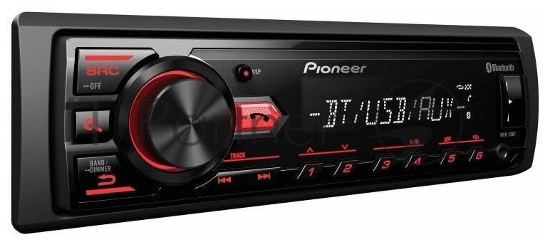Автомагнитола Pioneer MVH-29BT, 1 DIN, USB/AUX/Bluetooth, 4х50Вт, с подключением к мультирулю, красная подсветка