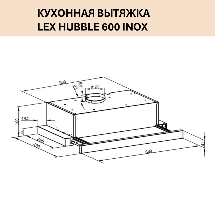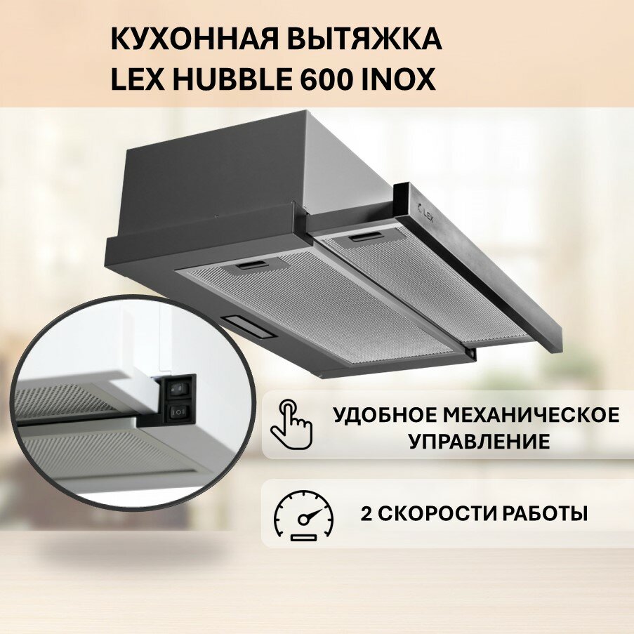 Вытяжка встраиваемая 60 см LEX HUBBLE 600 INOX, нержавеющая сталь / кухонная полновстраиваемая