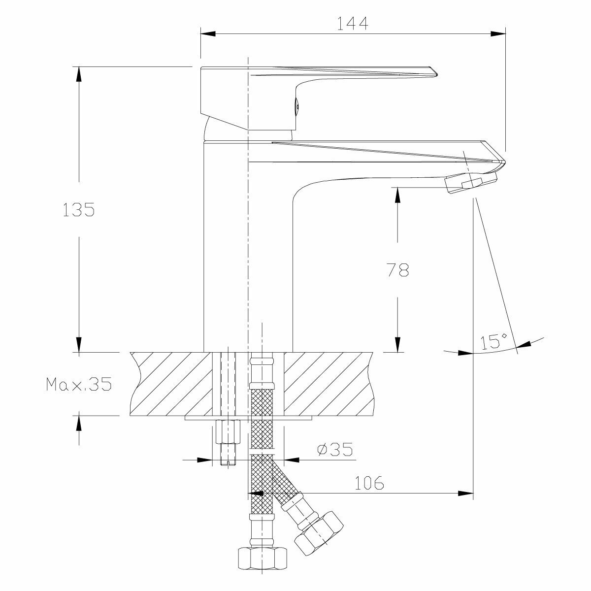 Смеситель для умывальника Rossinka RS28-11 одноручный (35 мм), монолитный, хром