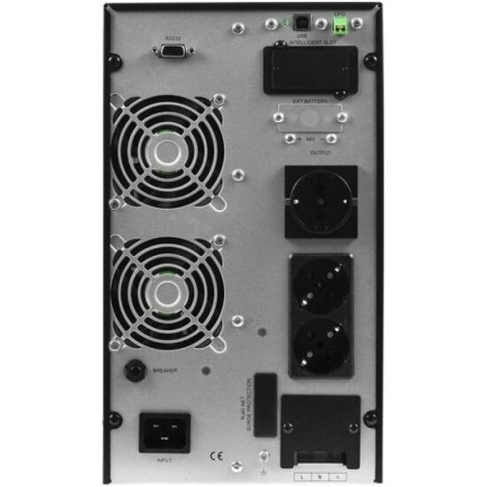 Powerman ИБП POWERMAN Online 3000, LCD, двойного преобразования, 3000ВА, 2700Вт, 2 евророзетки с резервным питанием, USB, RS232, слот SNMP, разъем EPO, внешний блок батарей (в комплект не входит), 215 х 315 х 475 мм., 8.9 кг./ UPS POWERMAN Online 3000, LC