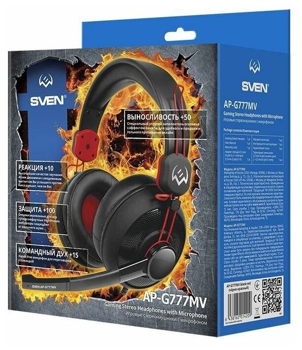 Наушники SVEN AP-G777MV, черный-красный (1/20)